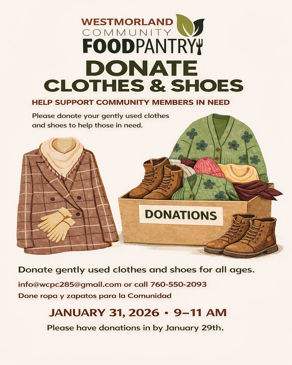 For more information, please contact Westmorland Food Pantry (760) 550-2093.